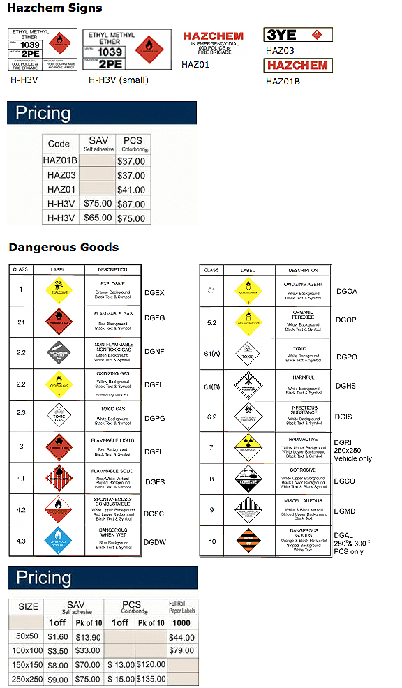 These signs are used for the safe storage of dangerous goods and materials. Safe and efficient storage of chemicals, poison and other dangerous materials is a requirement of the Dangerous Goods Act. We can manufacture any hazardous goods sign. If your requirement is not listed please contact a customer service representative.